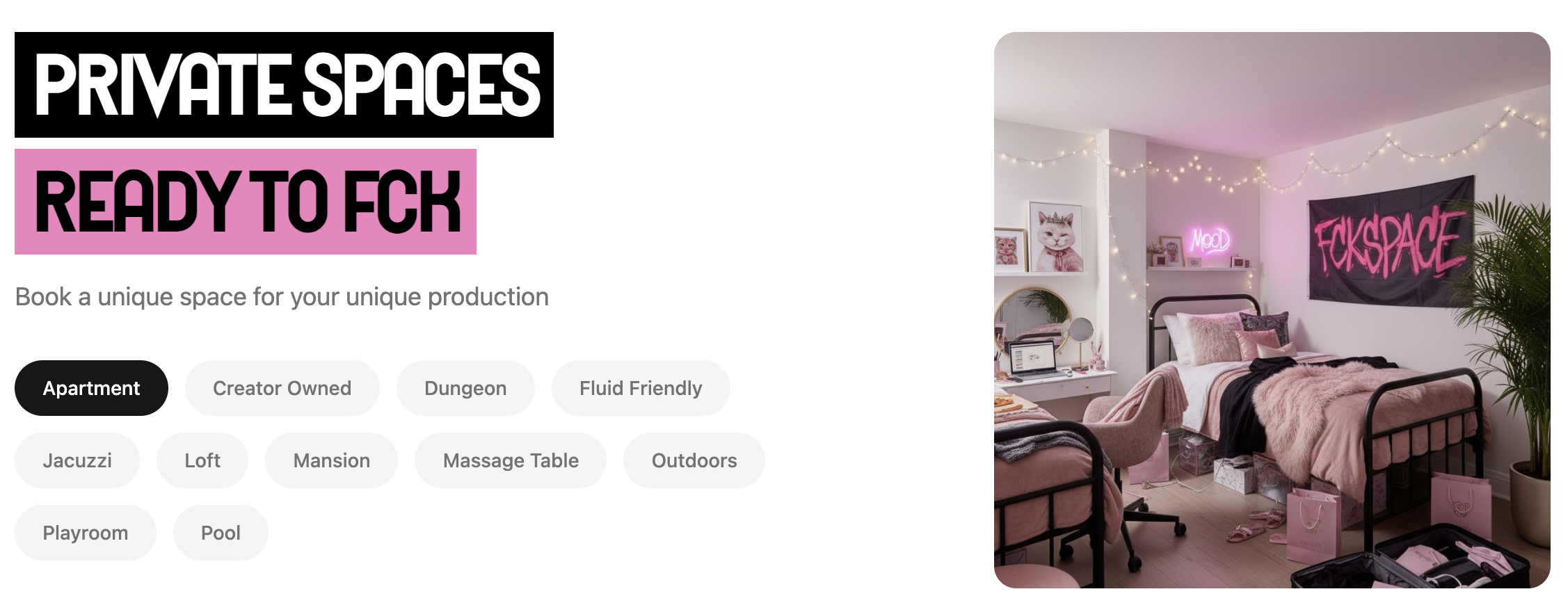 According to the company, FckSpace gives creators access to “real private spaces, real hosts who understand the industry, and a booking system that respects their work.”
